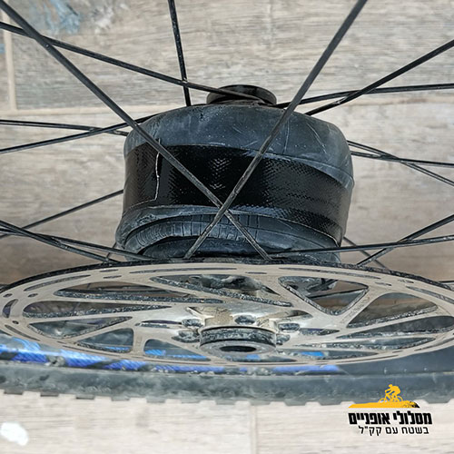אז הנה טיפ ראשון – את הפנימיות הרזרביות שלכם אתם יכולים פשוט ללפף על הנאבה (ציר הגלגל)! זה יאפשר לכם לחסוך את המשקל על הגב ולא, זה לא ישפיע על התנגדות הגלגול של הגלגל מאחר והמשקל נמצא קרוב לציר הסיבוב שלו. כמובן רצוי לצפות את הפנימית בצורה כזו שלא תינזק לאורך זמן מאבק / מים / קרינה / אבנים עפות ושאר מרעין בישין.