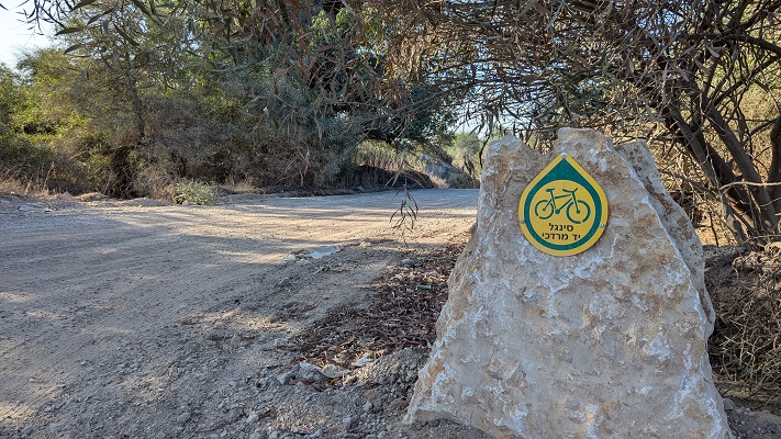 בקצה הדרום מזרחי של רחבת העפר הרחבה נבחין בשביל רחב הפונה דרומה. בכניסה אליו מוצב סלע הסימון הראשון של השביל עליו הטיפה הצהובה המפנה דרומה. נתחיל את הרכיבה על השביל הרחב ואחרי כ-150 מטרים נתפצל ימינה עם הסימון לשביל רחב המטפס מערבה ומרחיק אותנו מכביש 4.