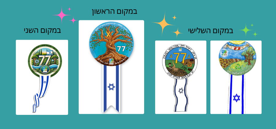 תחרות עיצוב סמל קק"ל ליום העצמאות ה-77 הסתיימה! הסמל הזוכה, שנבחר מתוך 83 עיצובים יפים ומעניינים שהשתתפו בתחרות, הוא הסמל שאיירה איילה מסטר מחיפה, שבמרכזו עומד העץ שמסמל את מסיבת הנובה. הסמל יופק במאות אלפי עותקים ויחולק בארץ ובעולם לקראת יום העצמאות