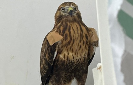 שקנאי עם פצעי ירי מלבנון ושבר בכנף, שנמצא על ידי קצין צה"ל באזור לחימה, הובא למרכז האקלום לחיות בר באגמון החולה קק"ל
