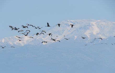 בתחילת האביב אפשר להבחין בקרב העגורים החונים באגמון החולה-קק"ל במספר התנהגויות אופייניות לעונה, בהן ריקודי החיזור ו"אימוני נדידה", שאחריהם יצאו למסע הארוך צפונה