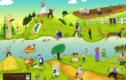 מאחד יוצאים 19: לפניכם איור מקורי שבו מסתתרים 19 פתגמים הקשורים למים וחקלאות. מצאו אותם!