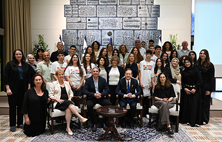 בבית הנשיא נערך אירוע חגיגי עם נציגי שבע הקבוצות הזוכות בתחרות ה-ISDG תשפ"ג, שהציגו את מיזמיהן החדשניים בתחום הפיתוח בר הקיימאצילום: חיים צח, לע"מ