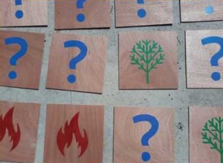 המשימה: על כל הקבוצה להגיע מנקודת ההתחלה לנקודת הסיום באמצעות דריכה רק על לוחות שעליהם מצויר עץ ולהימנע מכניסה לשרפה.