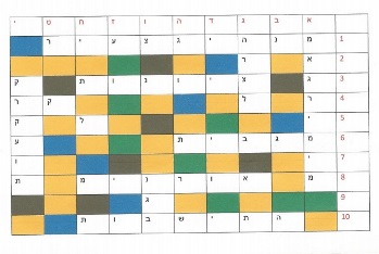 בשורה העליונה בכל ריבוע כותבים אותיות מאל"ף עד יו"ד ובשורה הימנית מלמעלה למטה כותבים מספרים מ-10-1.