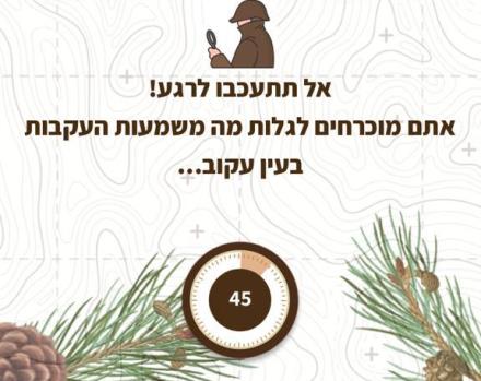 מדי יום מפוזרות בעין עקוב תמונות של עקבות בעלי חיים, שעליהן כתובות שפשרן לא ברור. אתם מוזמנים להגיע ליער, לבקר במעיין יפהפה, לעבור דרך פינות קסומות ותצפיות מרהיבות, ולנסות לפענח את משמעות הכתובות. אבל – היזהרו – ייתכן מאוד שמאחורי התעלומה עומד גורם עוין...