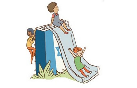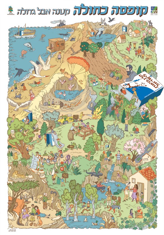 חלקו את הכרטיסיות בין הילדים (אם יש בקבוצה מעל עשרים ילדים, חלקו אותם לזוגות). בקשו מכל ילד למצוא את הקופסה הכחולה המופיעה בכרטיסייה שלו בציור הפרוש על הרצפה ולעמוד לידה. בקשו מכל משתתף לתת כותרת לנושא המופיע בכרטיסייה שבידו ולהכריז עליה בקול רם.