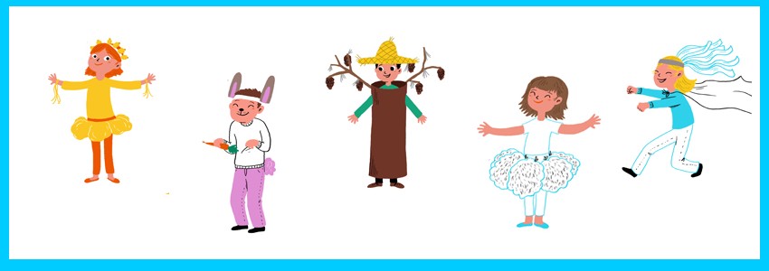 הציפורים: מסכה מקרטון וגליל נייר טואלט, כנפיים מבד חצאית ישנה.