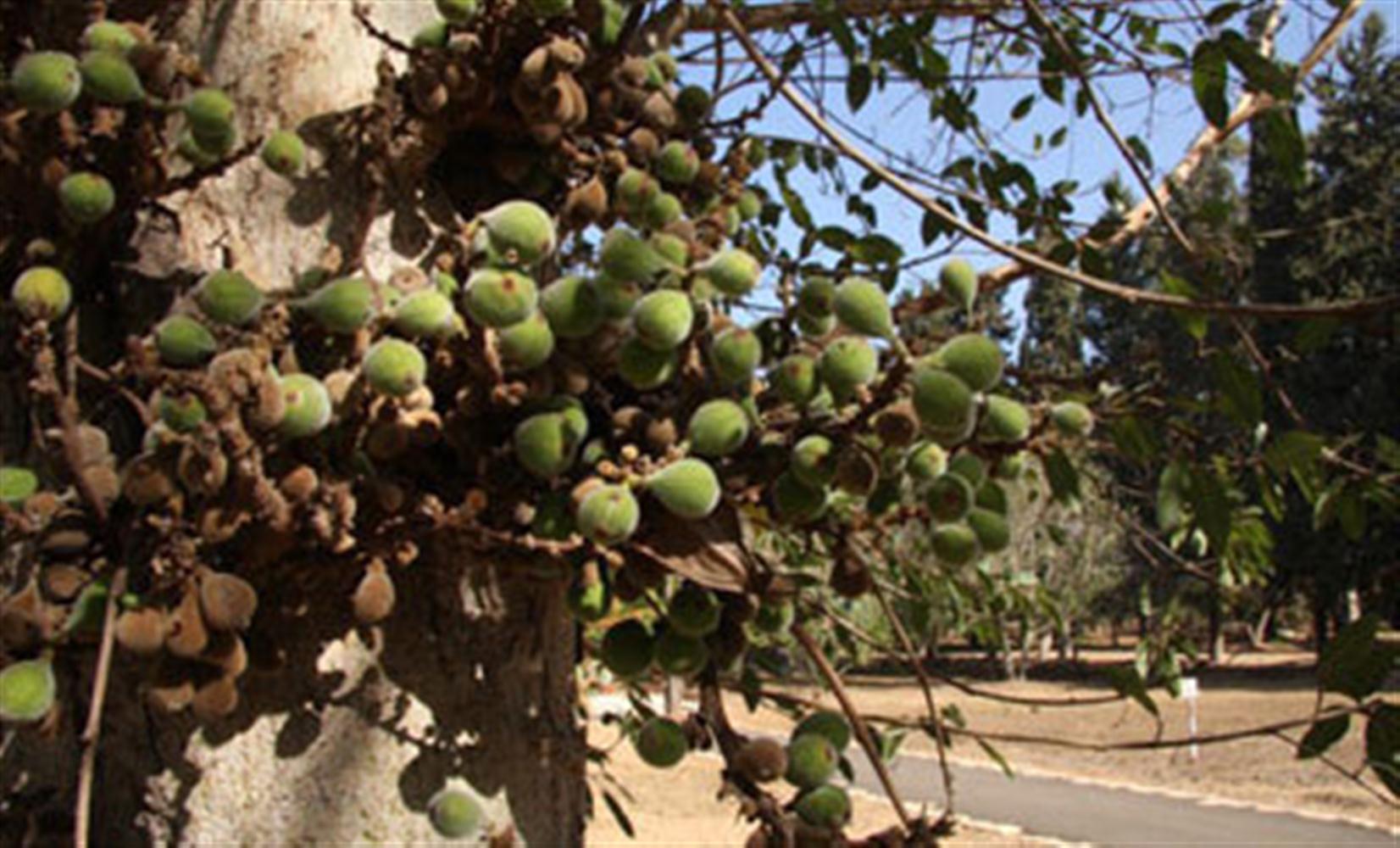 פיקוס מגובב (3) (Ficus glomerata), המזכיר במראהו את קרובת משפחתו – השקמה. התואר "מגובב" ניתן לו על שום פירותיו המגובבים בצפיפות וצמודים היישר אל הענפים הראשיים ואף אל גזע העץ. פיקוס מגובב נפוץ בהודו ושם מכינים מקליפתו מבחר תרופות עממיות. ממחקרים מדעיים עולה שבחלקים שונים של העץ, בעיקר בעלים, נמצאים חומרים יעילים להורדת הסוכר בדם.