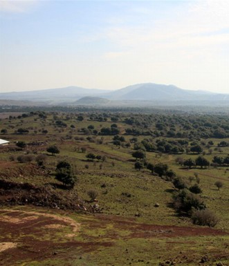שביל הגולן יורד מהפסגה צפונה, עובר בין מטעי הנשירים של הדרוזים מצפון הגולן ומגיע לאחר כשני ק"מ לשולי יער אודם (יער מסעדה). זהו יער נפלא, שריד ליער ענק שכיסה את צפון הגולן. הצ'רקסים שבאו לגולן במאה ה-19 התפרנסו, בין השאר, מכריתת עצים ומכירתם, דבר שצמצם את ממדיו של היער הגדול. מאוחר יותר ניצל הצבא הסורי את חלקו המערבי של היער כמסווה למתקניו, ולכן אסר על הפגיעה בו. בכך, תרמו הסורים תרומה לשיפור מצבו של היער.