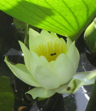 צמח שעליו דמויי הלב צפים במים. הפרח גדול ולבן ובעל אבקנים צהובים. הוא צומח במקומות שזרימת המים בהם אטית. הצמח נכחד מהחולה והושב מחדש, אך עדיין מצוי בסכנת הכחדה.