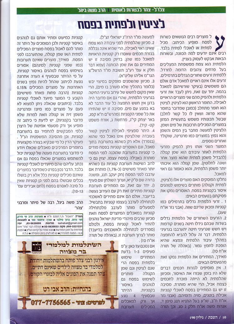 רבים אינם יודעים למה הכוונה ומי היא הלפתית. בכתבה זו אשר תלווה במאמרו של הרב משה ביגל רבה של הישוב מיתר מרבני צוהר, ננסה להבהיר את הנושא, מבחינה בוטנית והלכתית.לפתית מצויה היא מצליב צהוב-פרחים שכיח מאוד מ"קבוצת החרדל". צמח חד-שנתי זקוף ומסועף, גובהו כמטר אחד. הגבעול שעיר. העלים התחתונים ערוכים בשושנת, נישאים על עוקץ, שסועים לאונות בדמות כינור, האונה הקיצונית גדולה הרבה מיתרן. עלי הגבעול הולכים וקטנים ככל שעולים במעלה הגבעול, ועוקצם מצטמצם.יחד עם הלפתית נמנים עם "החרדלים" גם איסטיס, בקבוקון, חטוטרן, חרדל למיניו, כרוב למיניו, מצלתיים, אריסימון ותודרה. אלה כולם צמחים צהובי פרחים, פורחי-אביב, שכיחים מאוד, והם נפוצים עד כדי יצירת כתמים נרחבים בנוף או מרבדי-פריחה צפופים אחידים.לפתית מצויה נפוצה בכתמים צפופים במיוחד בשדות בלתי מרוססים, בשדות-בור, בצידי דרכים ובמעזבות ברחבי החבל הימתיכוני בארץ, חודרת אף אל שולי המדבר. תפוצתה העולמית משתרעת בארצות הים התיכון והמזרח התיכון, וגם באזורים "ימתיכוניים" אחרים, כגון מערב ארצות הברית.בסוג לפתית רק מין אחד (לדעת אחרים כלול בו עוד מין אחד, סודני).עלים צעירים של לפתית נאכלים בסלט או מבושלים. גם מי-הבישול מנוצלים, שתייתם נחשבת סגולה לבריאות.תיקונים והבהרות בוטניותלשימושי הלפתית שמונה הרב ביגל (אשר אינן גורעות מההבהרות ההלכתיות שבמאמרו המצורף)משום מה טועים היצרנים (וגם הטעו כנראה את כותב המאמר כבוד הרב ביגל )שמן הקנולה מופק לא מלפתית אלא מסוג קרוב ששמו כרוב השמן (הנאפוס)הכוונה היא לצמח החקלאות שאיננו צמח בר בארץ.הטעות נובעת מכך שמישהו שאיננו בקי בבוטניקה נתן לו בעברית את השם הלא נכון.כתב לנו הגולש ילון שחורי מה מקור הטעות:"מקור הטעות בכינוי לפתית לכרוב השמן הוא במילון אבן שושןשתרגם ללפתית את .rape seed .וגם תרגם את שמן לפתית את rape oilבמגדיר לצמחי תרבות מופיע השם כרוב הנפוס עבור המין שמגדלים לשמן בארצות המערב Brassica napus , כפי שכתוב כאן...הצמח ממנו מייצרים את שמן הקנולה שייך בוטנית לסוג כרוב. זה סוג רב מינים כל הכרובים והכרוביות שייכים אליו.היו כאלה שהחליטו להצמיד לו את השם ליפתית. זה חידוש של השנים האחרונות.זה גידול חקלאי חדש יחסית הוא לא היה מוכר בעבר הרחוק.מבחינת תיאור הזרעים ושימושיהם במאמרו של הרב ביגל והשימושים יכול להיות שהכוונה לכרוב שחור ,Brassica nigra , שהוא מין שהפיקו ממנו בעבר את תבלין החרדל. זה מין בר בארץ והיה מוכר מזמן.המלצה חמה לקרוא את המאמר המצורף.בתקווה שהערפל הבוטני וההלכתי סביב הלפתית ושימושי מוצריו בפסח התפזר.