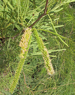 העלים מנוצים פעמיים, עם 12- 25 זוגות של עלעלים באורך 6- 16 מ"מ אורך ורוחב 1.5 -3.2 מ"מ. הפרחים קטנים בצבע צהוב-זהב ומסודרים בתפרחות בצורת שיבולת גלילית באורך 5- 10 ס"מ. לתרמיל יש טעם מתוק, אורכו 10 -20 ס"מ, והוא גלילי או מעוקל בצורה לא רגולרית, ירוק ומצהיב בהבשלה. התרמיל מכיל 10-20 זרעים קשים סגלגלים באורך 2.5-7 מ"מ. עץ בוגר יכול לייצר מאות אלפי זרעים, הנשארים חיוניים עד 10 שנים. הזרעים מופצים על ידי בעלי חיים הניזונים מתרמילי הזרעים. מערכת השורשים שלו חודרת לעומק רב (עד כ-50 מ'!) ומתפרשת גם בצורה אופקית. העץ בדרך כלל אינו מתרבה וגטטיבית, אלא באמצעות זרעים בלבד, אולם בעצים פגועים נראית התחדשות מהשורשים.