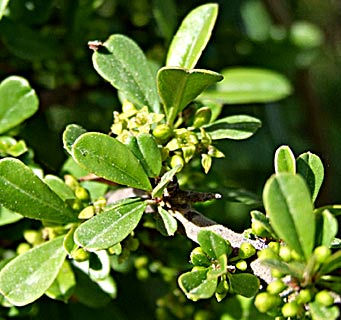 עץ נמוך, קוצני וסבוך, גובהו עד 4 מ'. הענפים הצדדיים קצרים ומסתיימים בחוד קשה. העלים גלדניים, נשירי-חורף, קטנים, אורכם 15 מ"מ, רוחבם חצי מאורכם. כדי להבדילו ממין דומה,