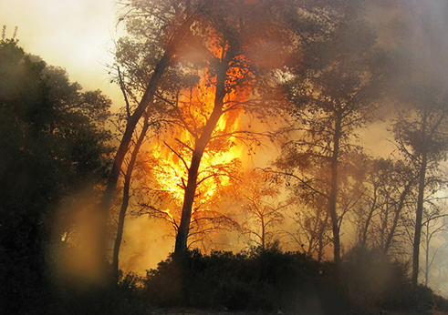 עם התחממות האקלים, תקופת הסיכון לשריפות שריפות יער לא מבוקרות התארכה מתחילת האביב ועד סוף הסתיו. שריפות מהוות סכנה ממשית ומיידית ליערות ישראל, למערכת האקולוגית וליישובים הסמוכים. בניגוד לאזורים אחרים בעולם בהם גורמי טבע כברקים מחוללים שריפות, בישראל הגורם הבלעדי כמעט להתלקחות אש הוא הגורם האנושי. כמעט כל שריפה שפורצת ביערותינו היא